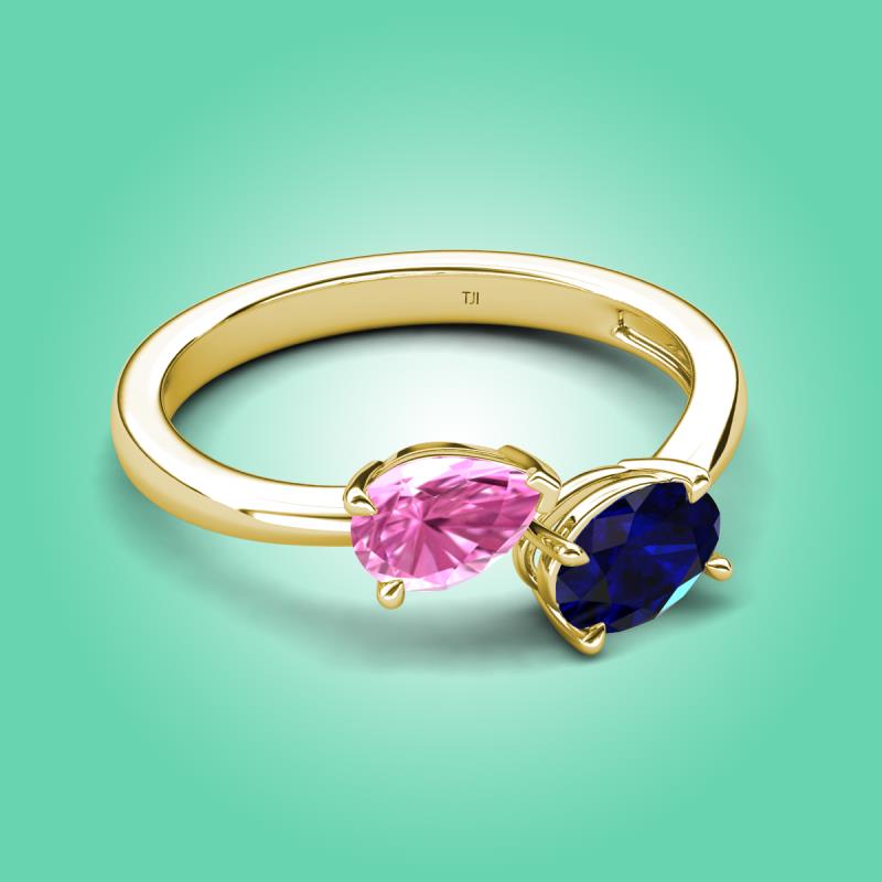1.80 ctw Pink Sapphire Pear Shape 7x5 mm & Blue Sapphire Oval Shape 7x5 mm with Prong setting Two Stone Duo Women Engagement Ring in 18K Yellow Gold More Details ...