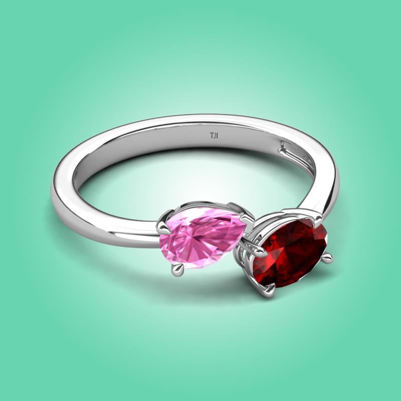 1.85 ctw Pink Sapphire Pear Shape 7x5 mm & Red Garnet Oval Shape 7x5 mm with Prong setting Two Stone Duo Women Engagement Ring in 14K White Gold More Details ...