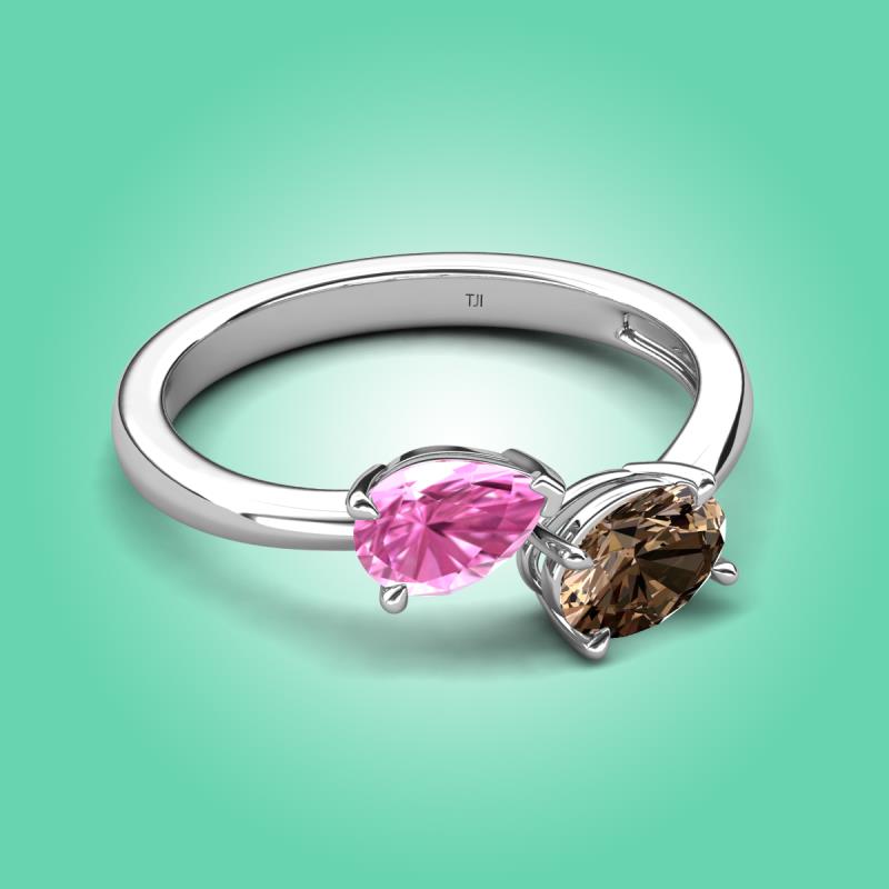 1.65 ctw Pink Sapphire Pear Shape 7x5 mm & Smoky Quartz Oval Shape 7x5 mm with Prong setting Two Stone Duo Women Engagement Ring in Platinum More Details ...