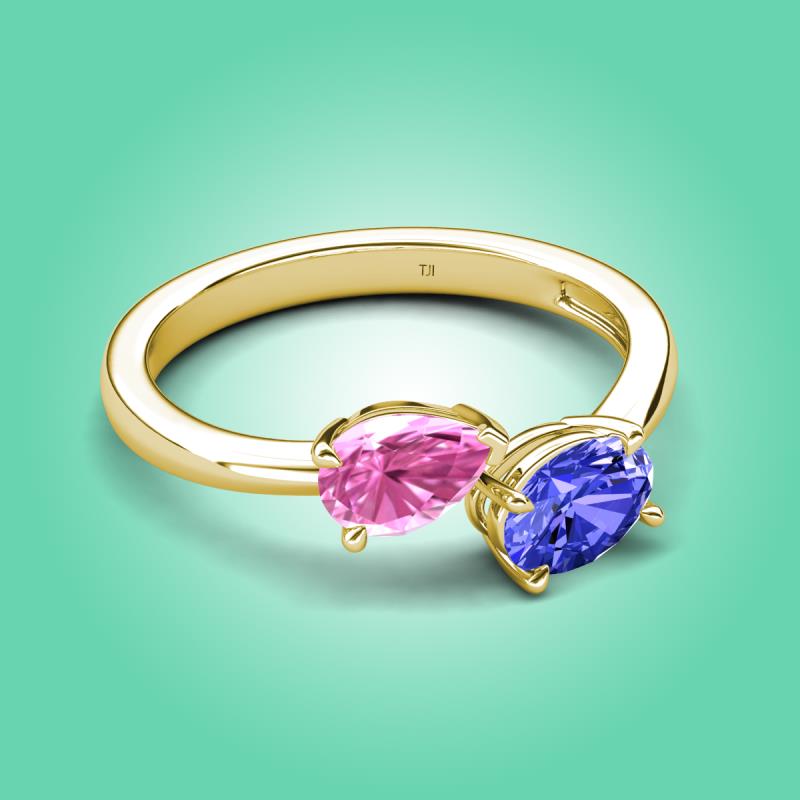 1.75 ctw Pink Sapphire Pear Shape 7x5 mm & Tanzanite Oval Shape 7x5 mm with Prong setting Two Stone Duo Women Engagement Ring in 18K Yellow Gold More Details ...
