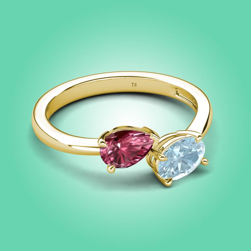 1.42 ctw Pink Tourmaline Pear Shape 7x5 mm & Aquamarine Oval Shape 7x5 mm with Prong setting Two Stone Duo Women Engagement Ring in 18K Yellow Gold More Details ...