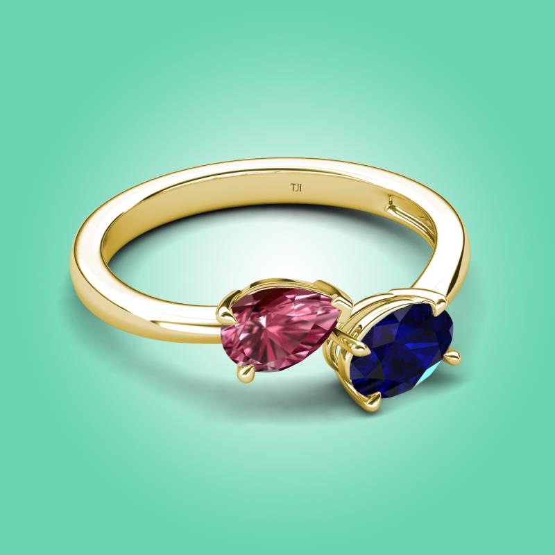1.60 ctw Pink Tourmaline Pear Shape 7x5 mm & Blue Sapphire Oval Shape 7x5 mm with Prong setting Two Stone Duo Women Engagement Ring in 14K Yellow Gold More Details ...