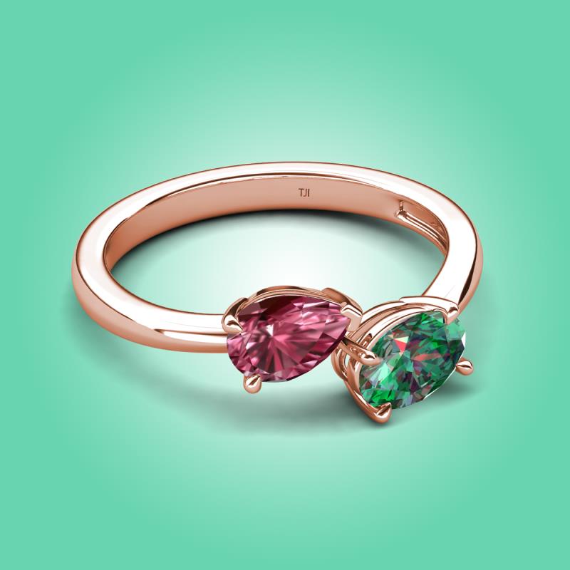 1.86 ctw Pink Tourmaline Pear Shape 7x5 mm & Lab Created Alexandrite Oval Shape 7x5 mm with Prong setting Two Stone Duo Women Engagement Ring in 18K Rose Gold More Details ...