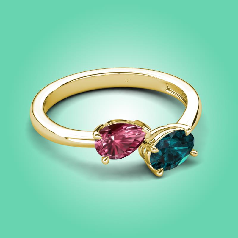 1.70 ctw Pink Tourmaline Pear Shape 7x5 mm & London Blue Topaz Oval Shape 7x5 mm with Prong setting Two Stone Duo Women Engagement Ring in 18K Yellow Gold More Details ...