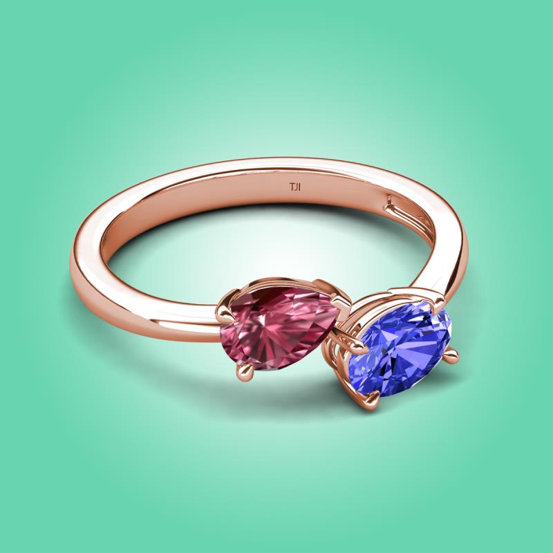 1.55 ctw Pink Tourmaline Pear Shape 7x5 mm & Tanzanite Oval Shape 7x5 mm with Prong setting Two Stone Duo Women Engagement Ring in 14K Rose Gold More Details ...