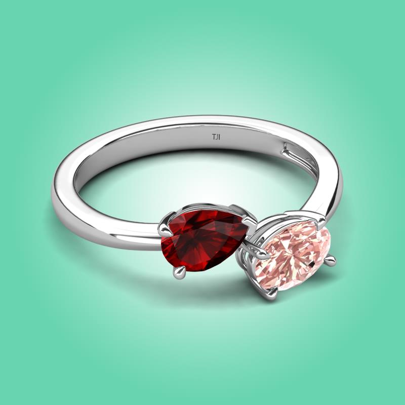 1.65 ctw Red Garnet Pear Shape 7x5 mm & Morganite Oval Shape 7x5 mm with Prong setting Two Stone Duo Women Engagement Ring in 18K White Gold More Details ...