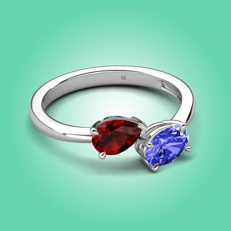 1.75 ctw Red Garnet Pear Shape 7x5 mm & Tanzanite Oval Shape 7x5 mm with Prong setting Two Stone Duo Women Engagement Ring in 14K White Gold More Details ...