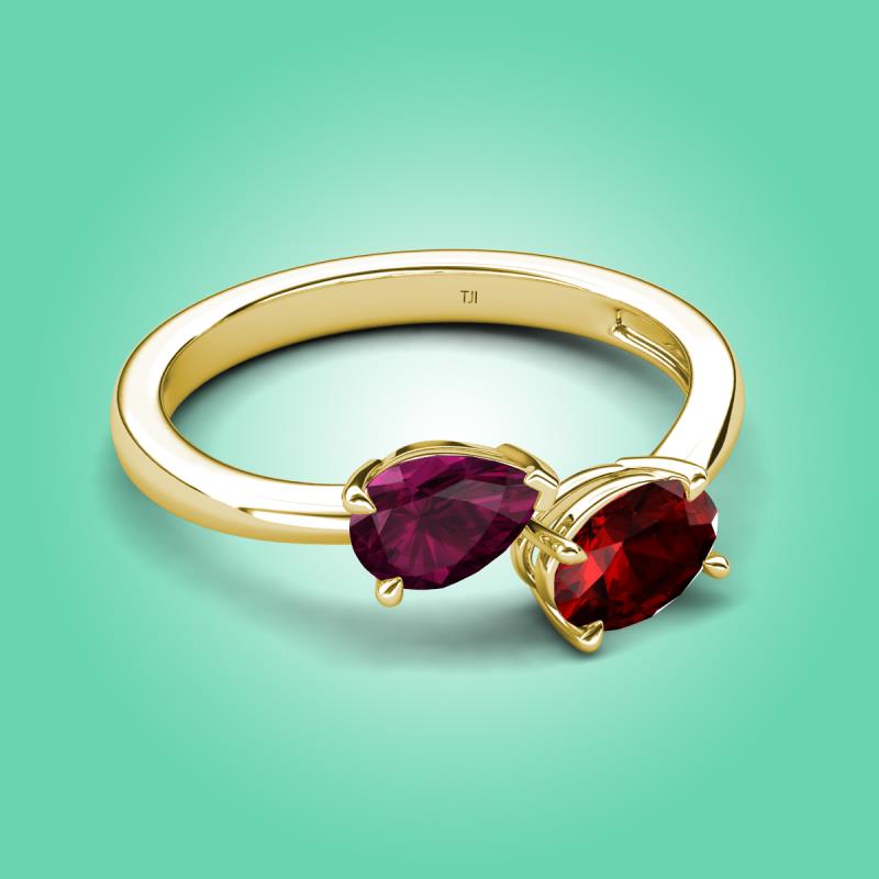 1.85 ctw Rhodolite Garnet Pear Shape 7x5 mm & Red Garnet Oval Shape 7x5 mm with Prong setting Two Stone Duo Women Engagement Ring in 14K Yellow Gold More Details ...