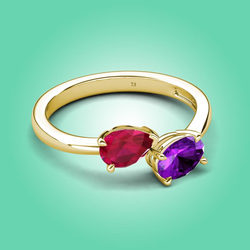 1.67 ctw Ruby Pear Shape 7x5 mm & Amethyst Oval Shape 7x5 mm with Prong setting Two Stone Duo Women Engagement Ring in 18K Yellow Gold More Details ...