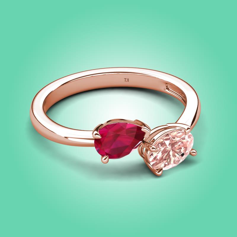 1.70 ctw Ruby Pear Shape 7x5 mm & Morganite Oval Shape 7x5 mm with Prong setting Two Stone Duo Women Engagement Ring in 14K Rose Gold More Details ...