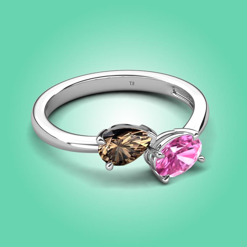 1.65 ctw Smoky Quartz Pear Shape 7x5 mm & Pink Sapphire Oval Shape 7x5 mm with Prong setting Two Stone Duo Women Engagement Ring in 18K White Gold More Details ...