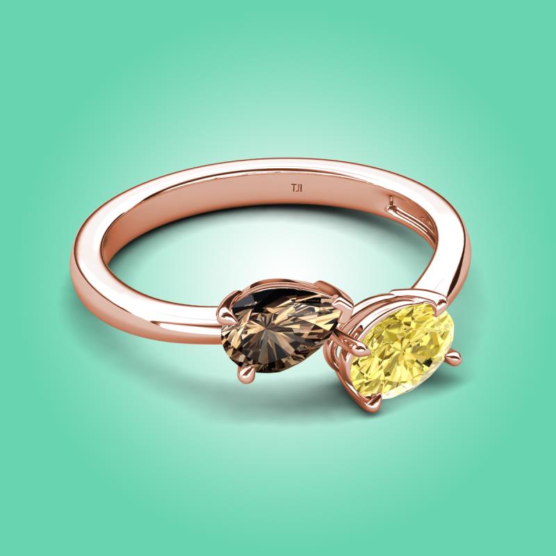 • 1 Smoky Quartz Pear Shape 0.65 ctw/7x5 mm and 1 Yellow Sapphire Oval Shape 1.00 ctw/7x5 mm Two Stone Duo Engagement Ring set in a Prong Setting.