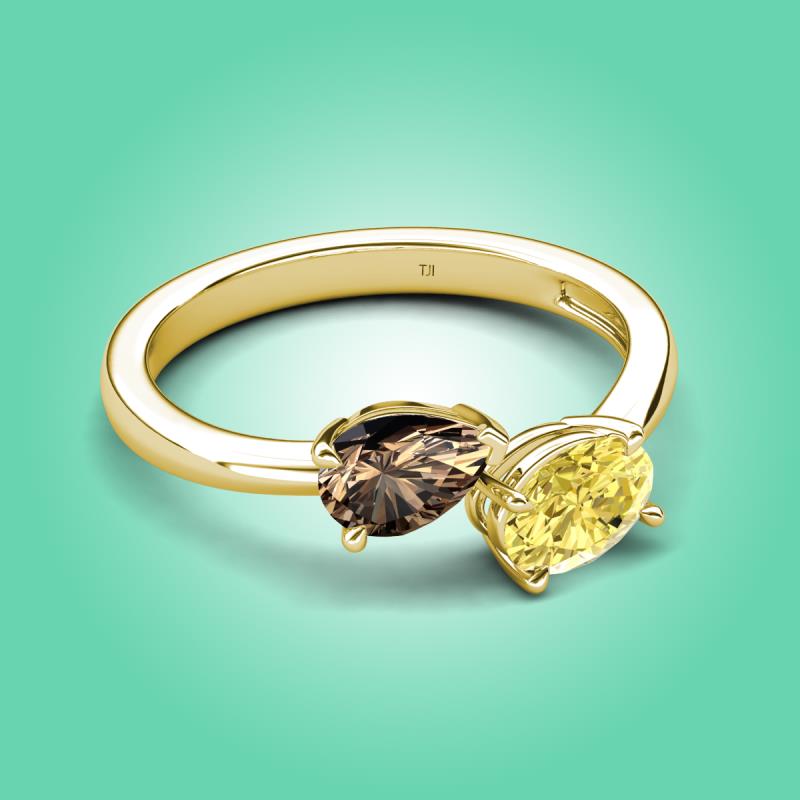 1.65 ctw Smoky Quartz Pear Shape 7x5 mm & Yellow Sapphire Oval Shape 7x5 mm with Prong setting Two Stone Duo Women Engagement Ring in 14K Yellow Gold More Details ...