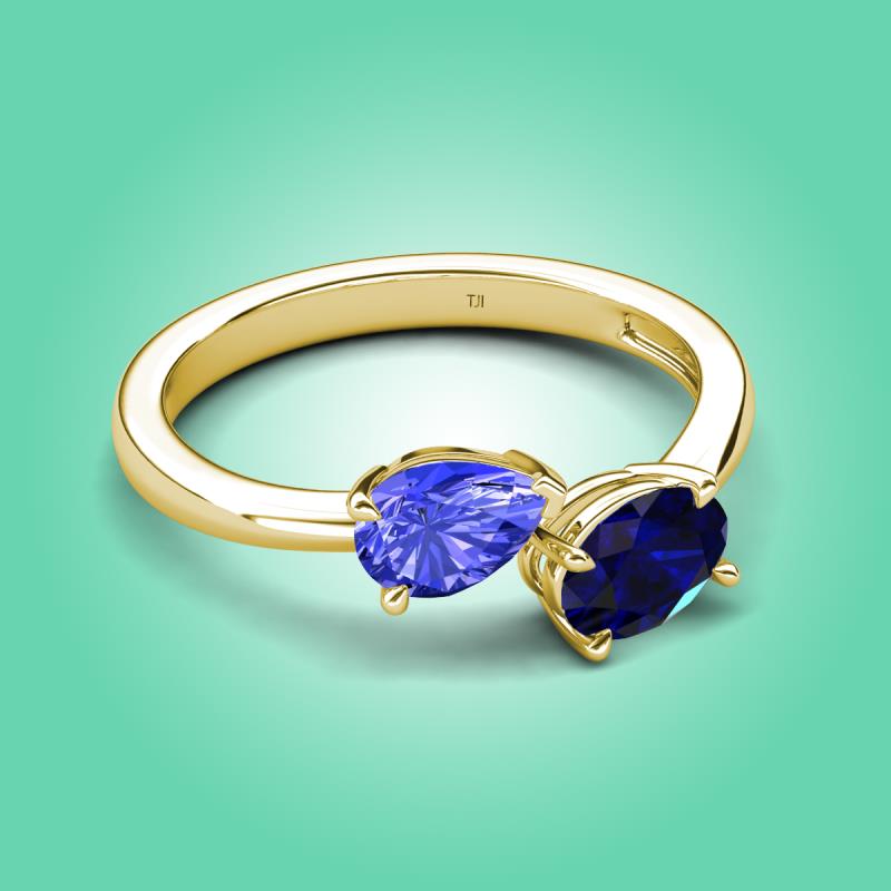 • 1 Tanzanite Pear Shape 0.75 ctw/7x5 mm and 1 Blue Sapphire Oval Shape 0.90 ctw/7x5 mm Two Stone Duo Engagement Ring set in a Prong Setting.