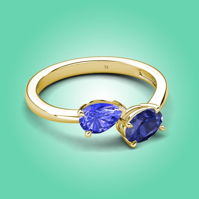 1.42 ctw Tanzanite Pear Shape 7x5 mm & Iolite Oval Shape 7x5 mm with Prong setting Two Stone Duo Women Engagement Ring in 14K Yellow Gold More Details ...
