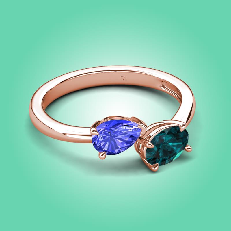 1.75 ctw Tanzanite Pear Shape 7x5 mm & London Blue Topaz Oval Shape 7x5 mm with Prong setting Two Stone Duo Women Engagement Ring in 14K Rose Gold More Details ...