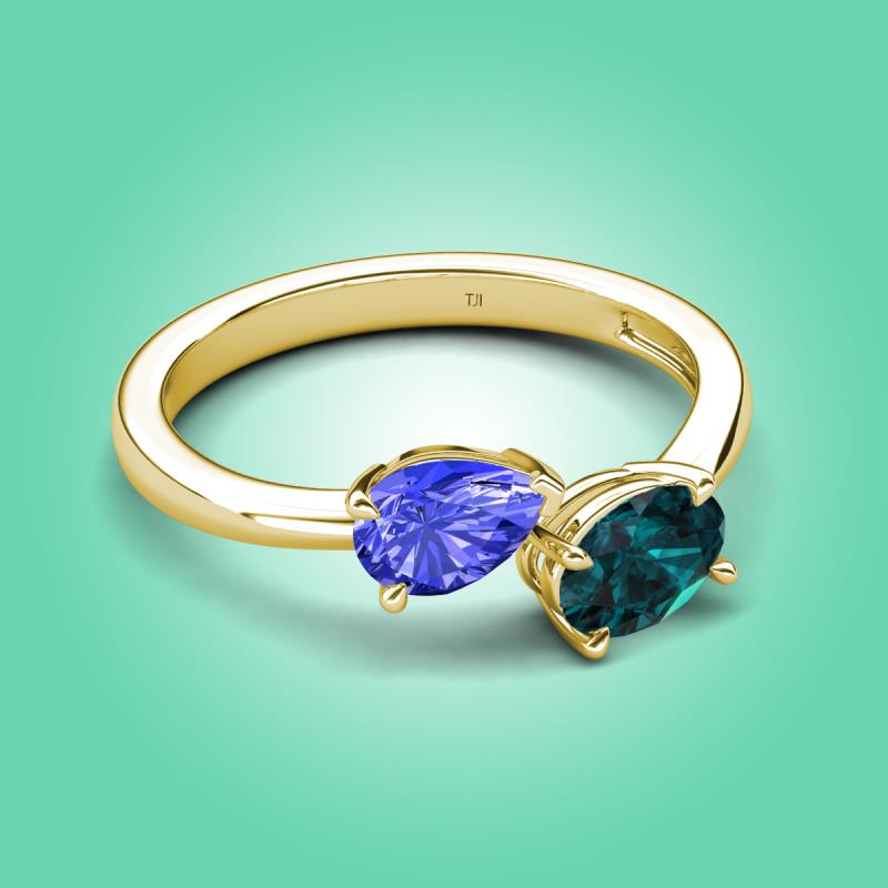 1.75 ctw Tanzanite Pear Shape 7x5 mm & London Blue Topaz Oval Shape 7x5 mm with Prong setting Two Stone Duo Women Engagement Ring in 14K Yellow Gold More Details ...