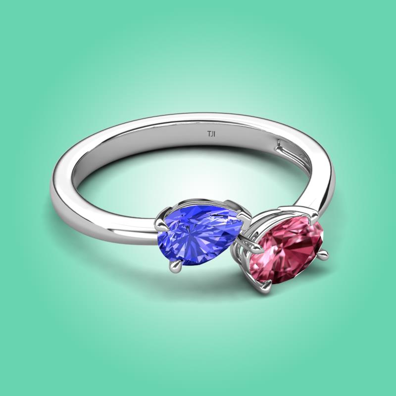 1.60 ctw Tanzanite Pear Shape 7x5 mm & Pink Tourmaline Oval Shape 7x5 mm with Prong setting Two Stone Duo Women Engagement Ring in Platinum More Details ...