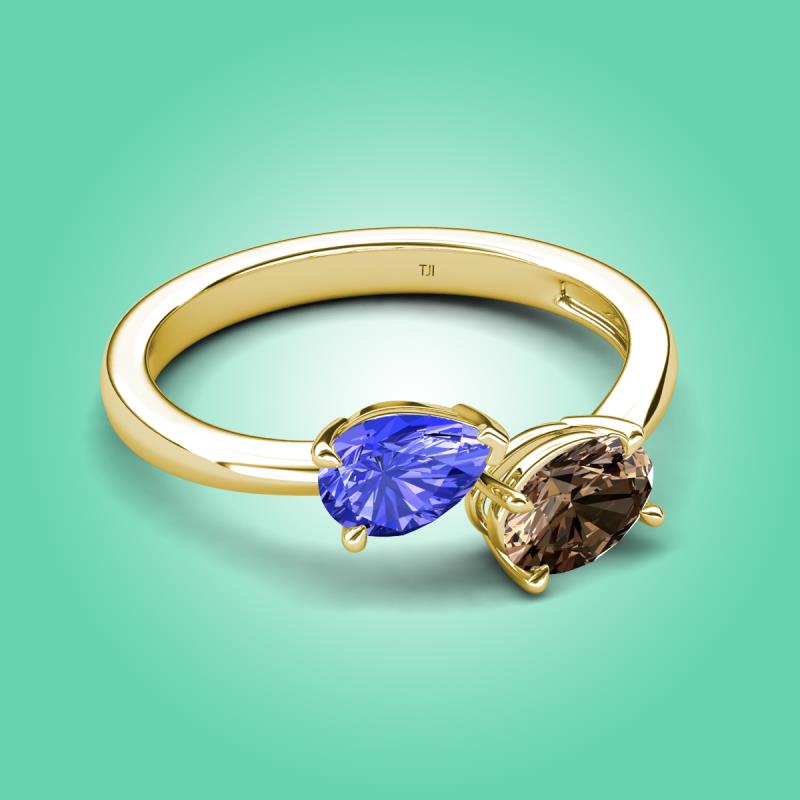 1.50 ctw Tanzanite Pear Shape 7x5 mm & Smoky Quartz Oval Shape 7x5 mm with Prong setting Two Stone Duo Women Engagement Ring in 18K Yellow Gold More Details ...