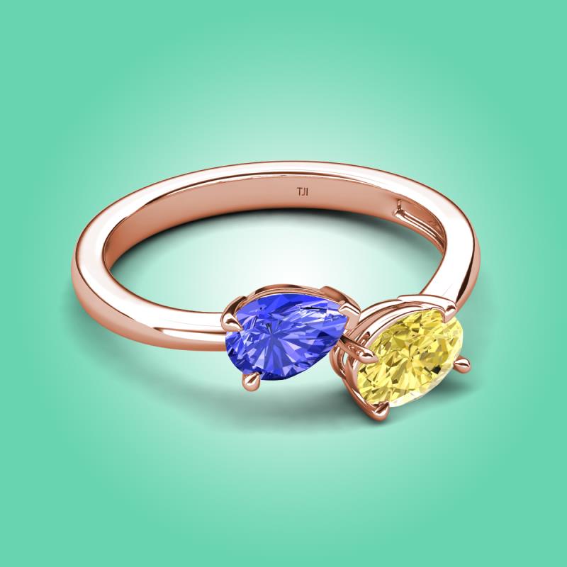 • 1 Tanzanite Pear Shape 0.75 ctw/7x5 mm and 1 Yellow Sapphire Oval Shape 1.00 ctw/7x5 mm Two Stone Duo Engagement Ring set in a Prong Setting.