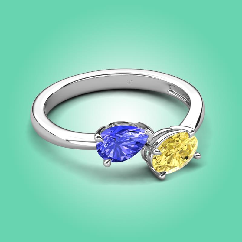 1.75 ctw Tanzanite Pear Shape 7x5 mm & Yellow Sapphire Oval Shape 7x5 mm with Prong setting Two Stone Duo Women Engagement Ring in 14K White Gold More Details ...