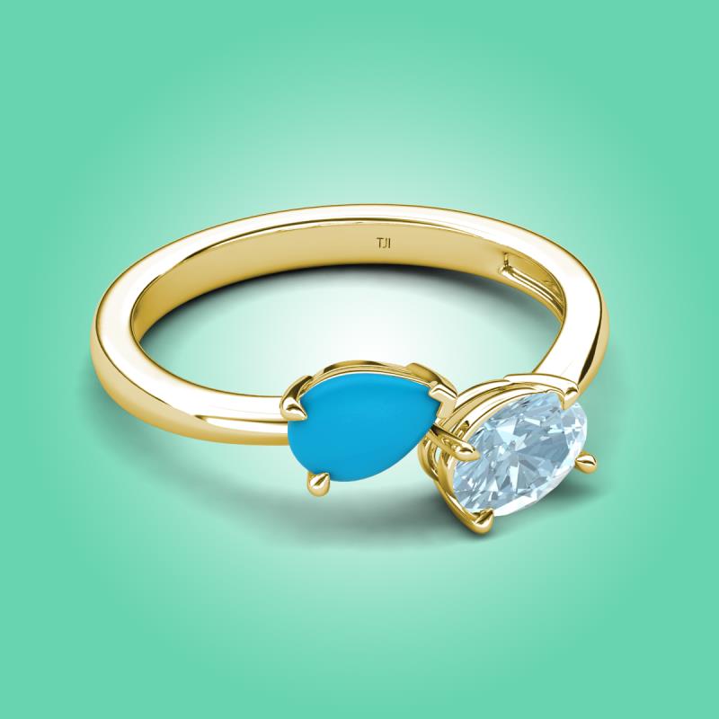 1.07 ctw Turquoise Pear Shape 7x5 mm & Aquamarine Oval Shape 7x5 mm with Prong setting Two Stone Duo Women Engagement Ring in 18K Yellow Gold More Details ...