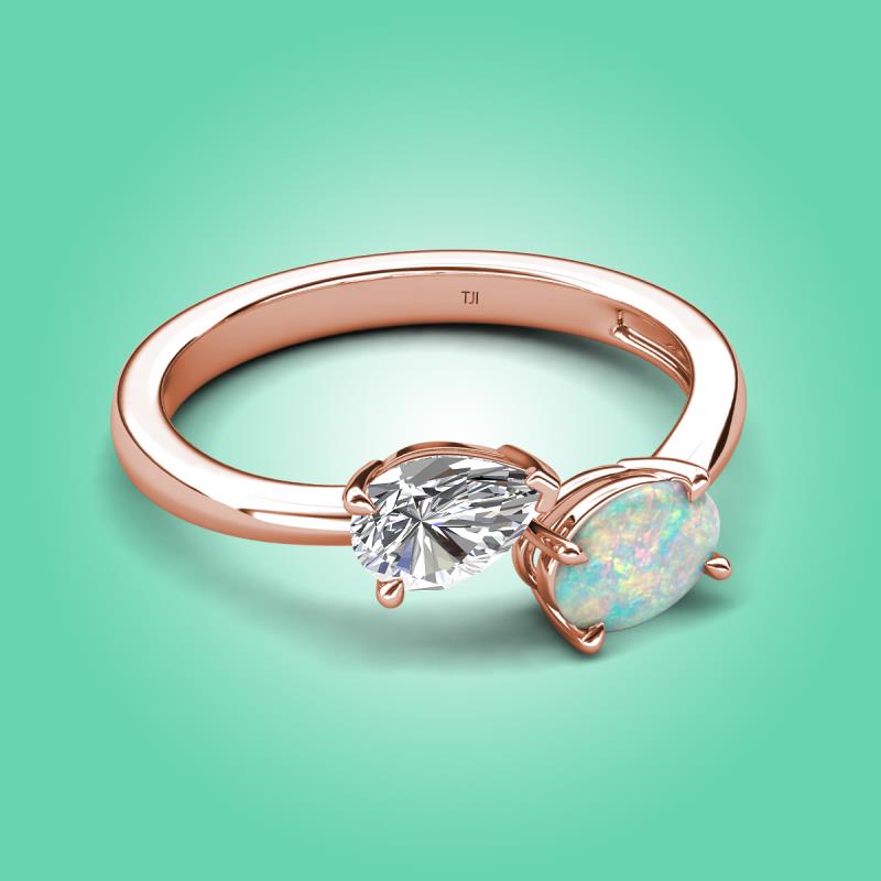 1.40 ctw White Sapphire Pear Shape 7x5 mm & Opal Oval Shape 7x5 mm with Prong setting Two Stone Duo Women Engagement Ring in 14K Rose Gold More Details ...