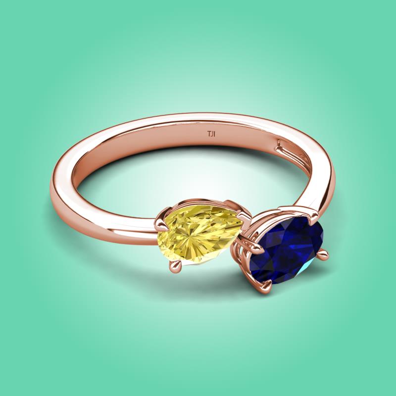 • 1 Yellow Sapphire Pear Shape 0.90 ctw/7x5 mm and 1 Blue Sapphire Oval Shape 0.90 ctw/7x5 mm Two Stone Duo Engagement Ring set in a Prong Setting.