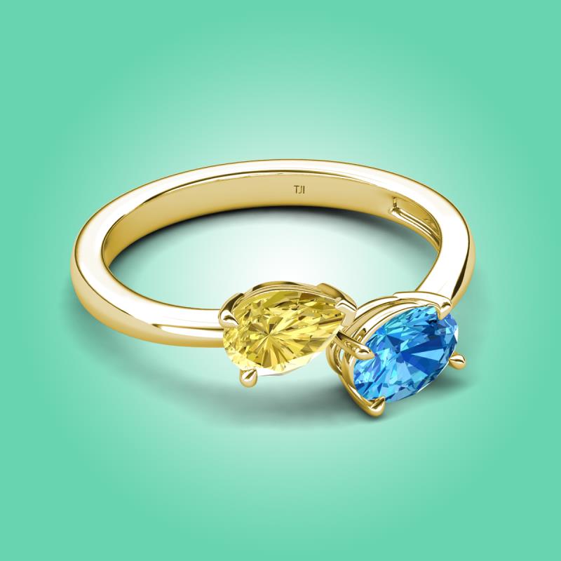 1.90 ctw Yellow Sapphire Pear Shape 7x5 mm & Blue Topaz Oval Shape 7x5 mm with Prong setting Two Stone Duo Women Engagement Ring in 14K Yellow Gold More Details ...