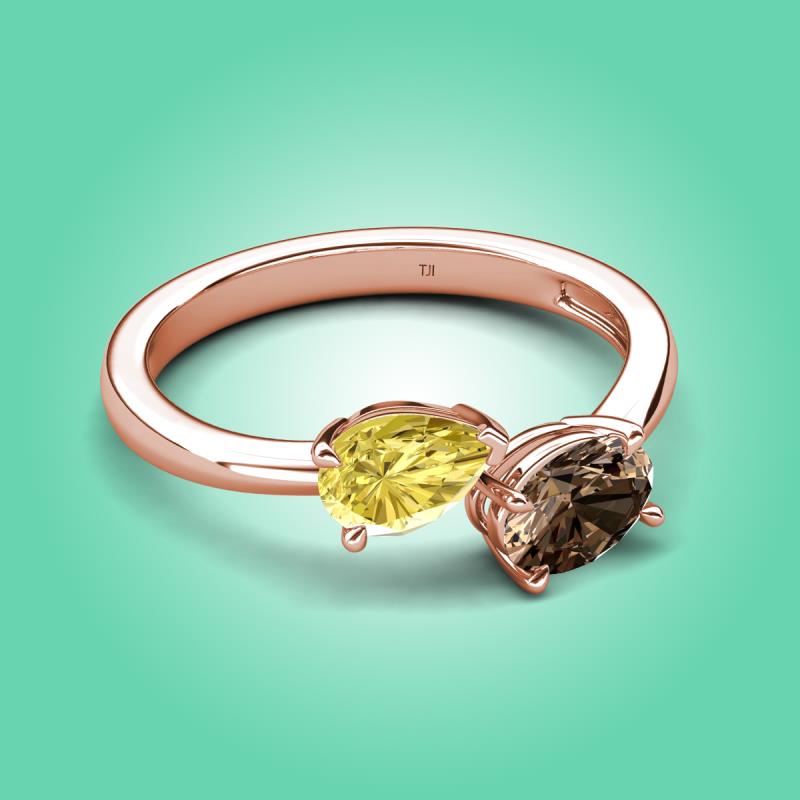 • 1 Yellow Sapphire Pear Shape 0.90 ctw/7x5 mm and 1 Smoky Quartz Oval Shape 0.75 ctw/7x5 mm Two Stone Duo Engagement Ring set in a Prong Setting.