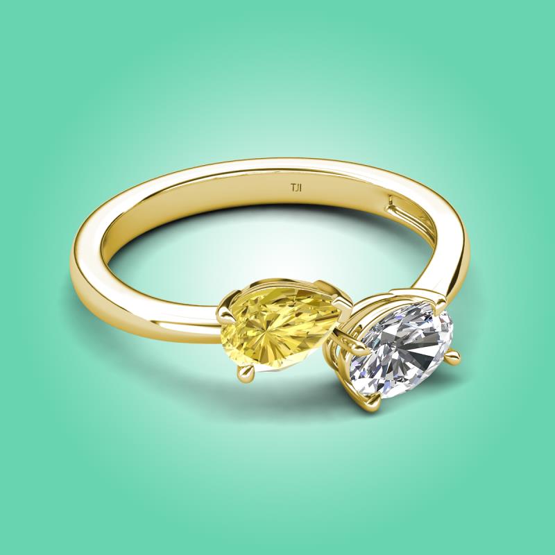 The Yellow Sapphire Pear Shape and White Sapphire Oval Shape Toi Et Moi Duo Ring of 1.90 ctw is the perfect representation of your unique and everlasting bond. The pear and oval shaped gemstones set in a Prong setting, complement each other perfectly, creating a stunning and timeless design that will capture the heart of your loved one, symbolizing your eternal love and commitment that will last a lifetime.