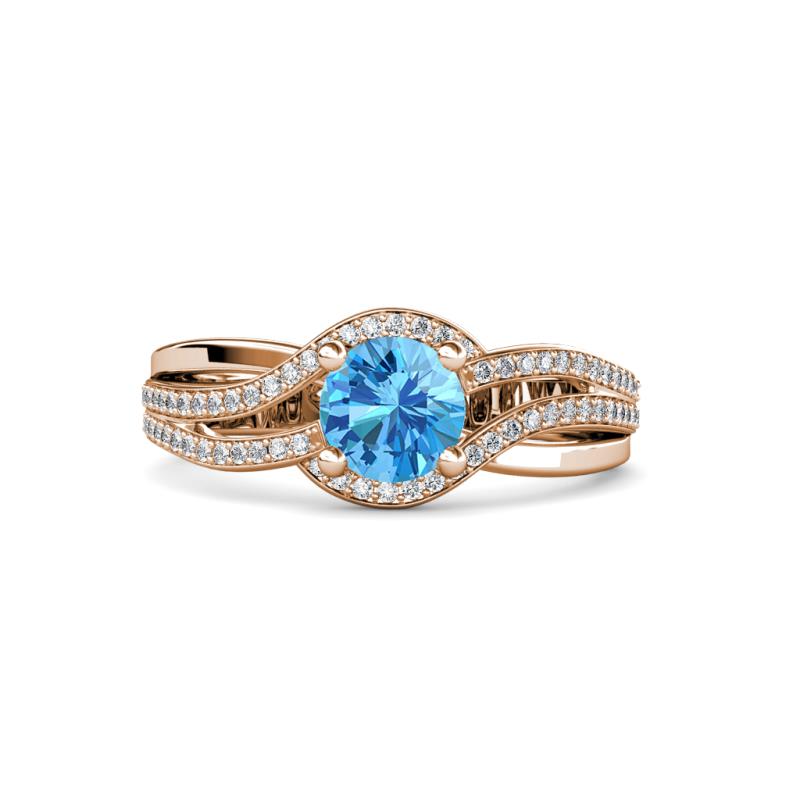1 1/4 ctw Round Blue Topaz and Diamond Swirl Womens Halo Engagement Ring 14K Rose Gold More Details ...