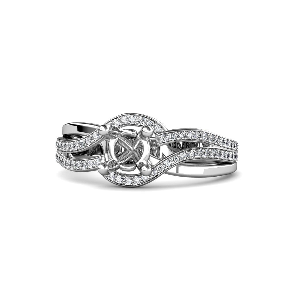 Express your deep love with this gorgeous Semi Mount Engagement Ring wrapped by pave set Diamonds around the bypass halo continuing with alternating crossover shank making it timeless and elegant.