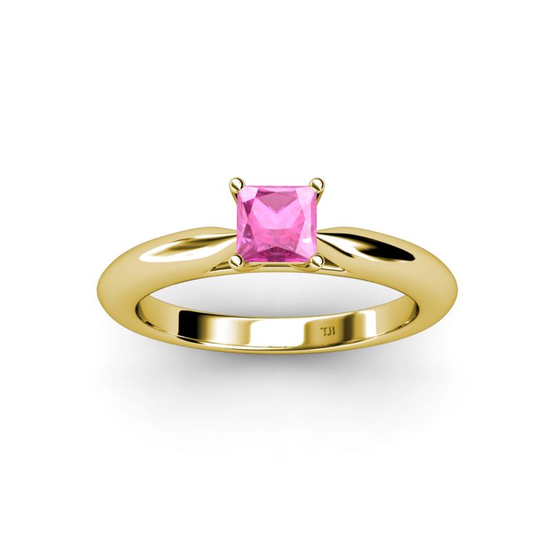 • 1 Princess Cut Lab Created Pink Sapphire set using Prong Setting.