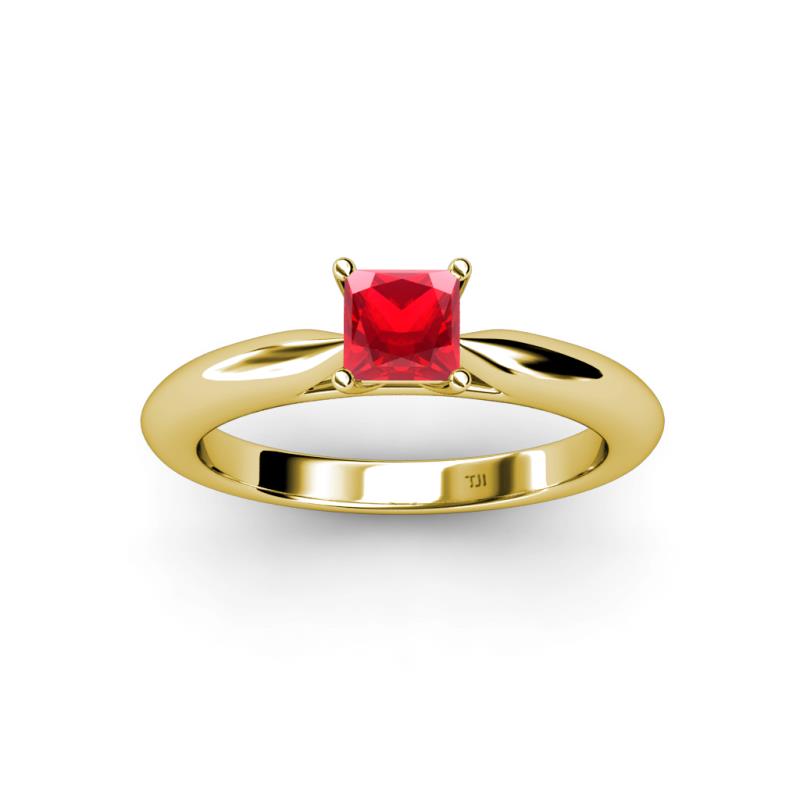 Princess Cut (5.5 mm) Red Garnet Womens Solitaire Engagement Ring 0.95 ct 14K Yellow Gold More Details ...