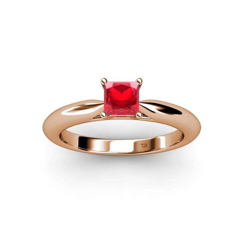 Princess Cut (5.5 mm) Red Garnet Womens Solitaire Engagement Ring 0.95 ct 18K Rose Gold More Details ...