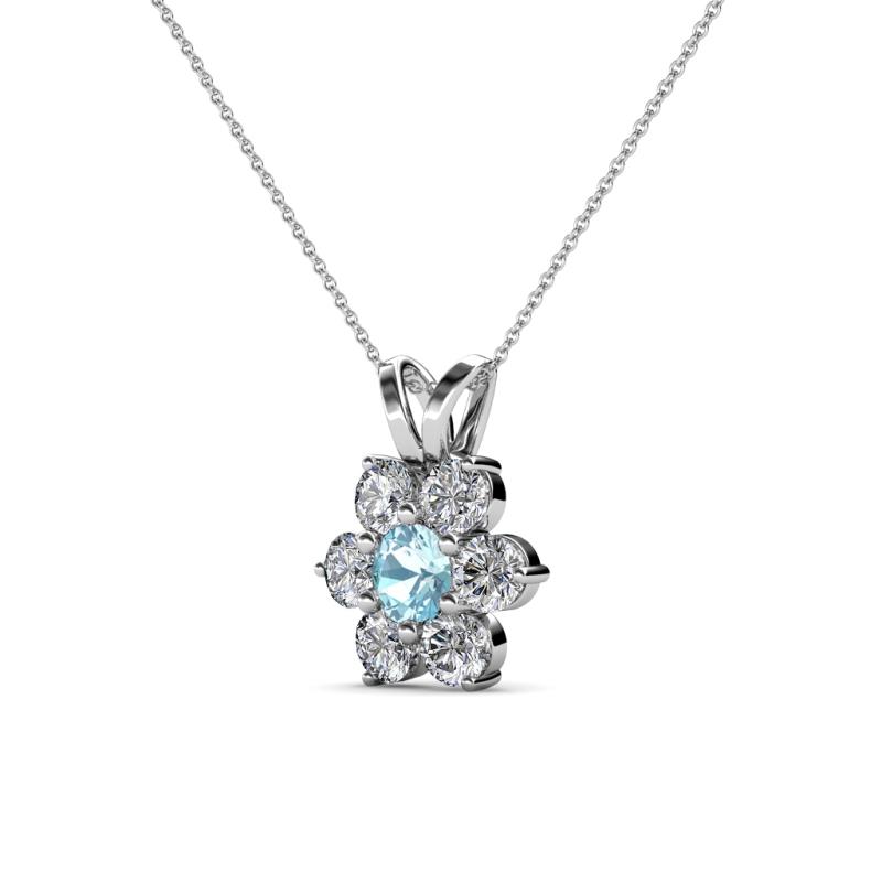 Aquamarine and Round Natural Diamond (SI2-I1, G-H) Floral Halo Pendant 0.78 ct tw in 14K White Gold.Included 16 Inches 14K White Gold Chain. More Details ...