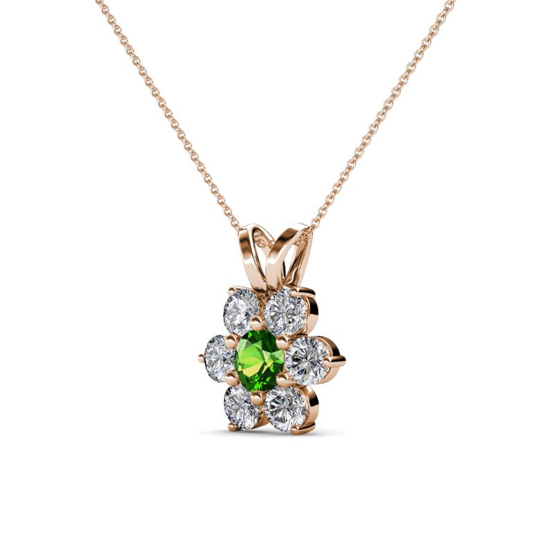 • Green Garnet and Diamond Halo Pendant in 14K Rose Gold with 16 Inches Cable Chain.