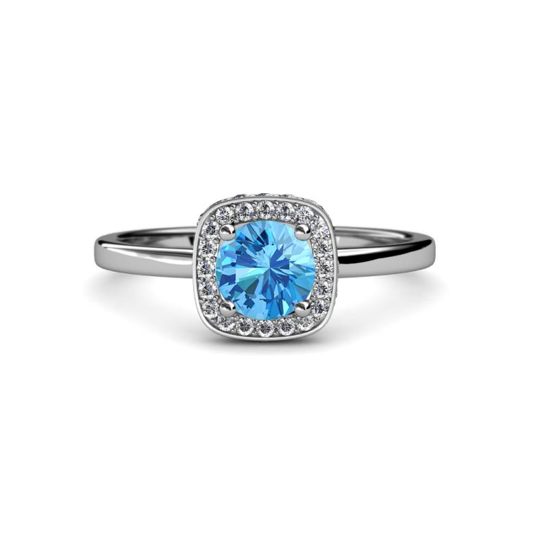 7/8 ctw Round Blue Topaz and Diamond Womens Halo Engagement Ring 0.90 ctw Platinum More Details ...