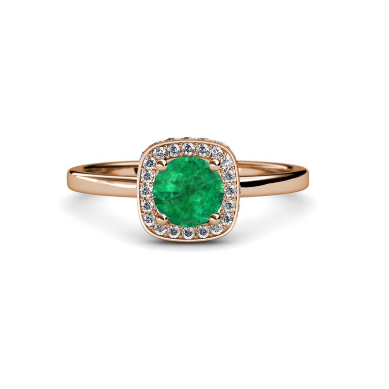 7/8 ctw Round Emerald and Diamond Womens Halo Engagement Ring 18K Rose Gold More Details ...