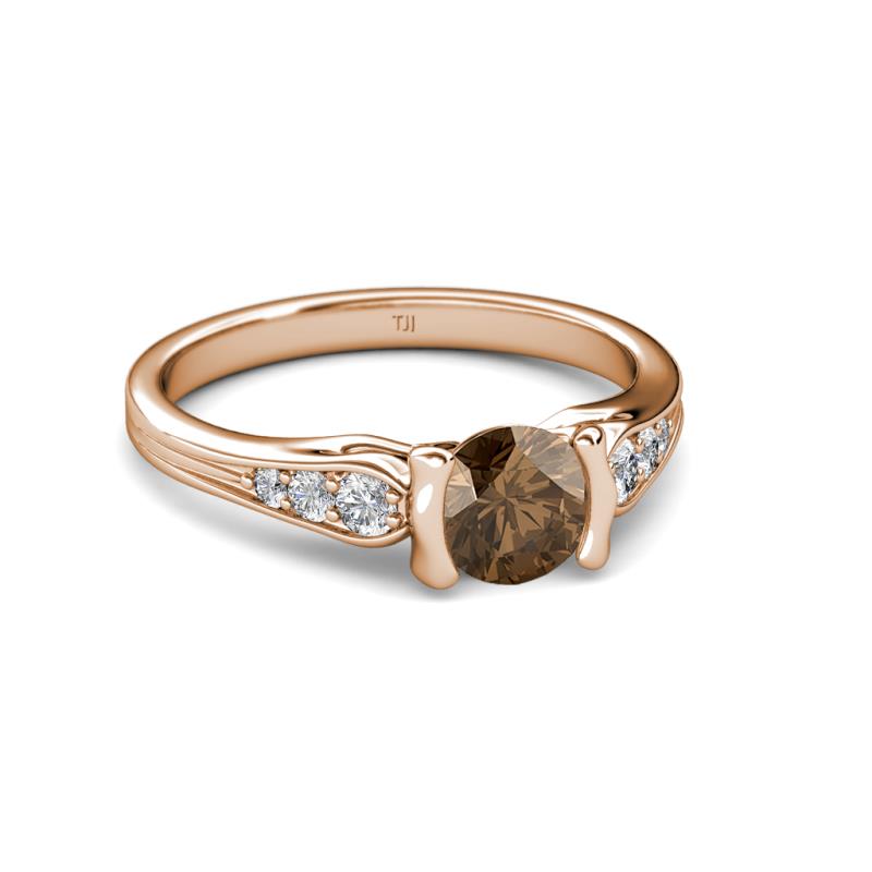 1 1/3 ctw Round Smoky Quartz and Diamond Womens Engagement Ring 18K Rose Gold More Details ...