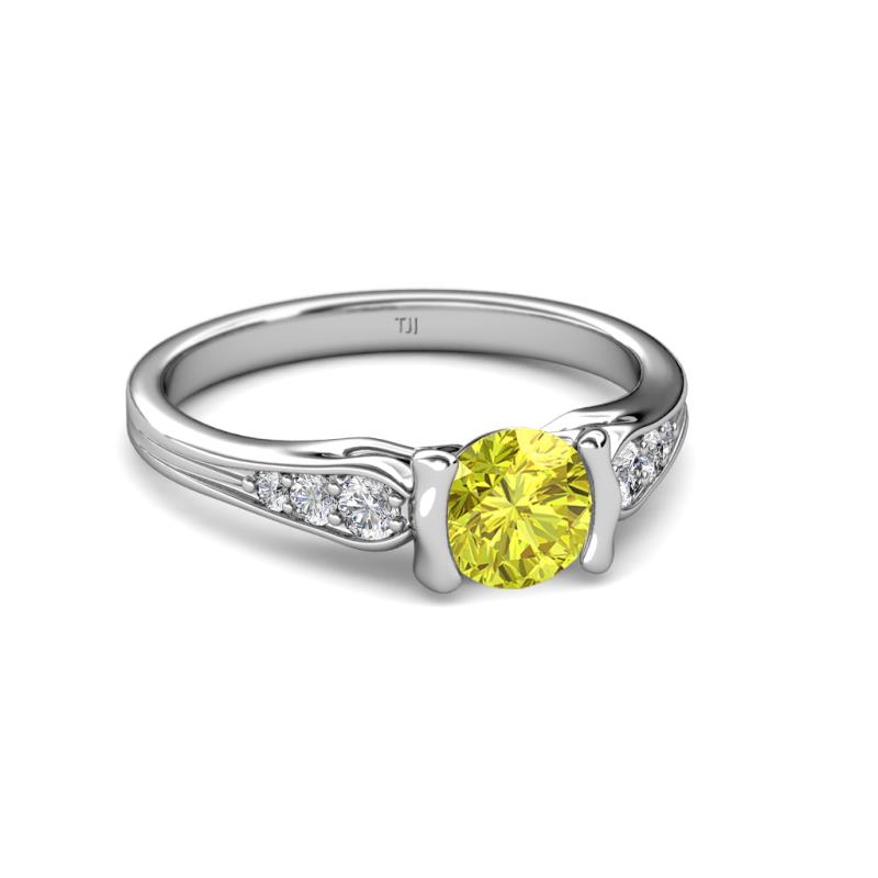 1 1/3 ctw Round Yellow and White Diamond Womens Engagement Ring 14K White Gold More Details ...