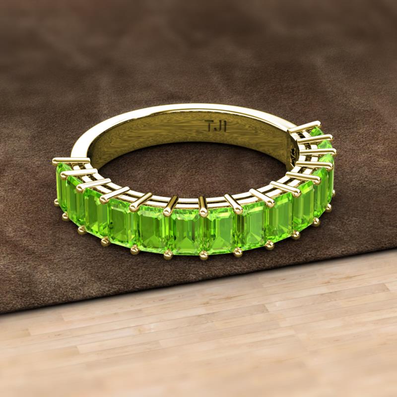 • 14 Emerald Cut Peridot of 4.20 ctw/5x3 mm set using Prong Setting.