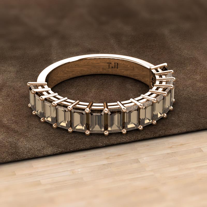 Emerald Cut (5x3 mm) Smoky Quartz 3 1/3 ctw 14 Stone Womens Wedding Band Stackable 14K Rose Gold More Details ...