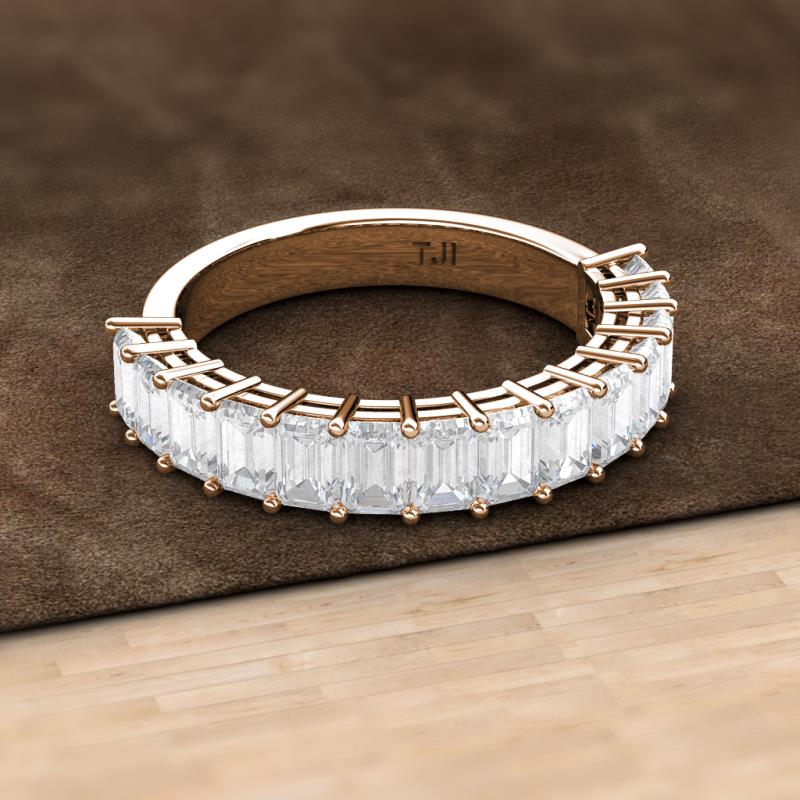Emerald Cut (5x3 mm) White Sapphire 4 7/8 ctw 14 Stone Womens Wedding Band Stackable 18K Rose Gold More Details ...
