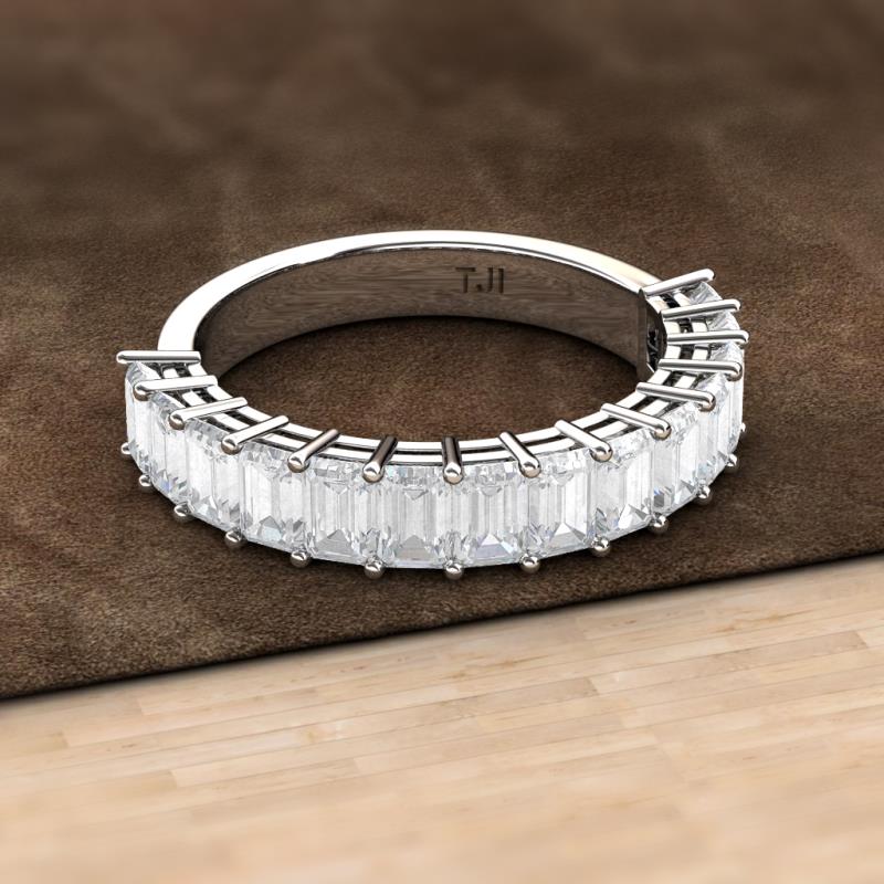 Emerald Cut (5x3 mm) White Sapphire 4 7/8 ctw 14 Stone Womens Wedding Band Stackable Platinum More Details ...