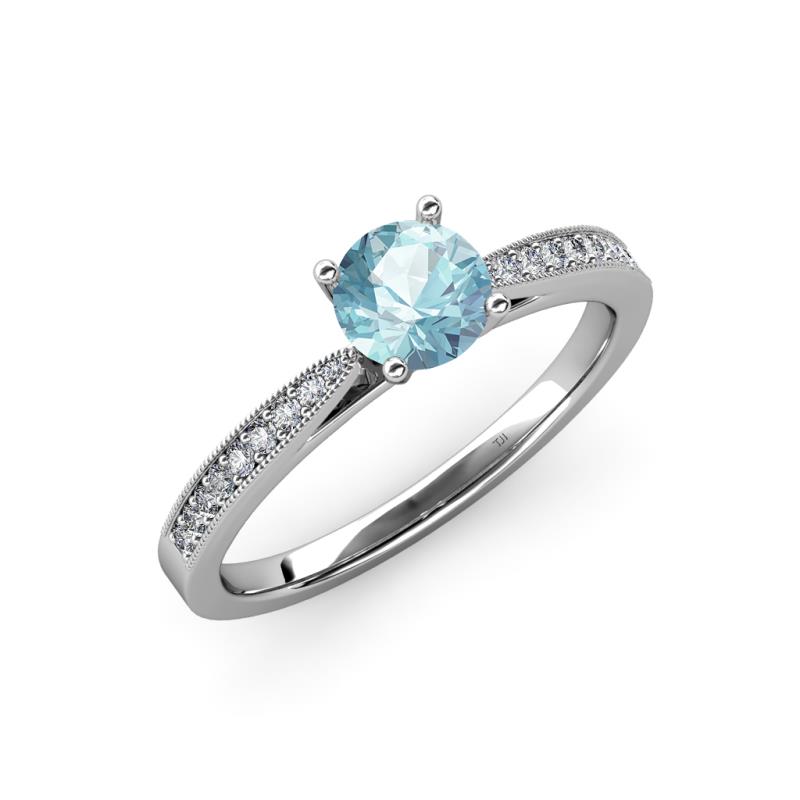 Aquamarine and Diamond Womens Engagement Ring with Milgrain Work 1.05 ctw 14K White Gold More Details ...