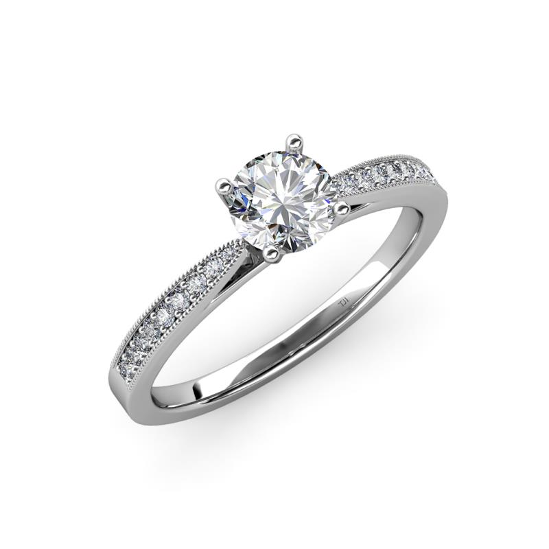 0.98 ctw IGI Certified Lab Grown Diamond Round (6.00 mm) & Natural Diamond Round (1.30 mm) Milgrain Work Prong set Women Engagement Ring in Platinum. More Details ...