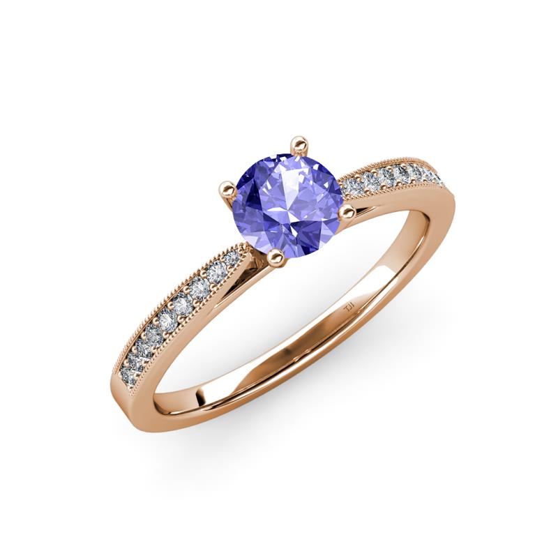 Tanzanite and Diamond Womens Engagement Ring with Milgrain Work 1.10 ctw 18K Rose Gold More Details ...