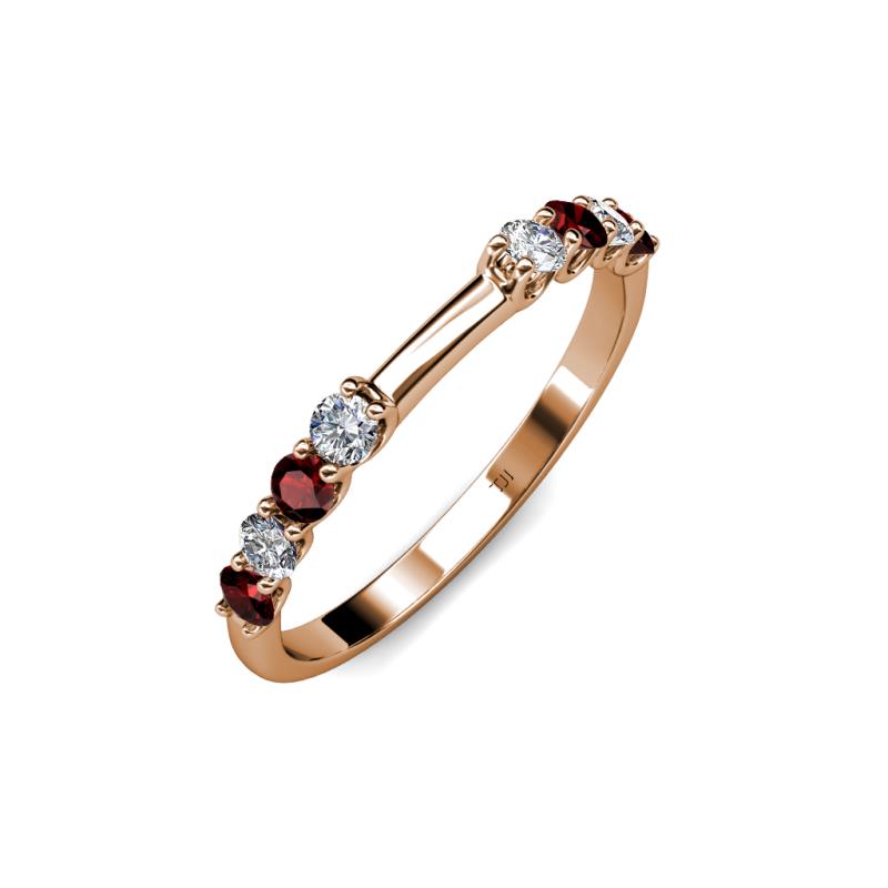 Red Garnet and Diamond 8 Stone Womens Wedding Band Stackable 0.55 ctw 18K Rose Gold More Details ...